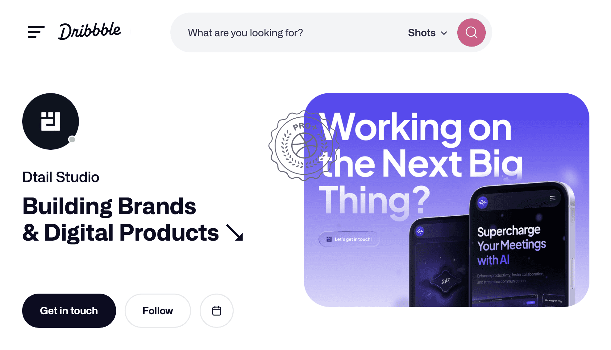Dtail Studio was named a Dribbble Top Web Design Agency for 2026 and Dribbble Top UI/UX Agency 2026.
